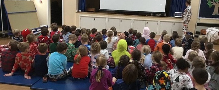 Reception and KS1 were treated to a Pyjama Party on Wednesday afternoon. They snuggled up with hot chocolate and biscuits to watch The Polar Express.